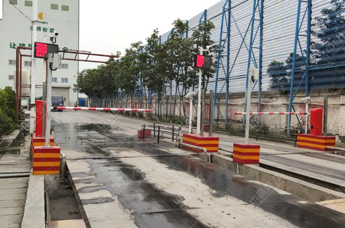 河南省衛(wèi)輝市豐博砂漿進(jìn)料無(wú)人值守地磅:LED屏顯示稱重?cái)?shù)據(jù),攝像頭監(jiān)控(抓拍)防作弊取證,道閘規(guī)范車輛停放位置等。