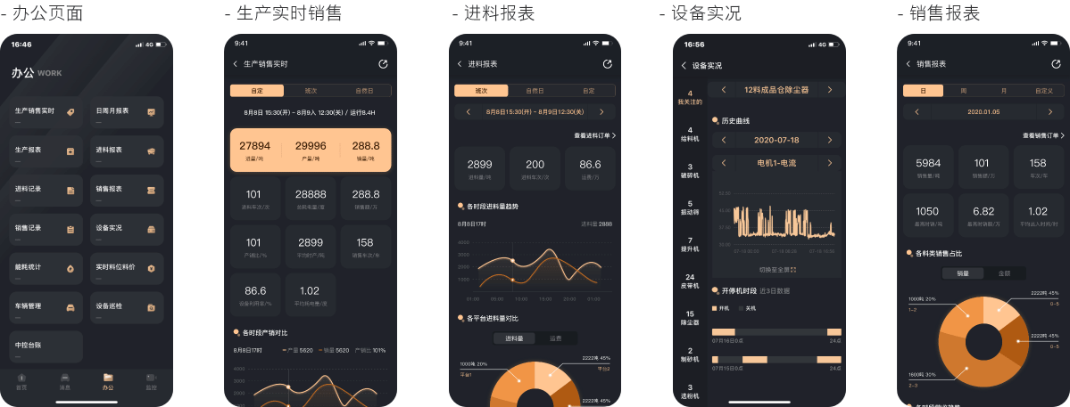 根據(jù)廠區(qū)硬件情況大支持13個功能,生產(chǎn)、進料、銷售、實時綜合報表、歷史綜合報表、進料訂單、銷售訂單、能耗管理、設(shè)備狀態(tài)、車輛管理等多種報表及功能