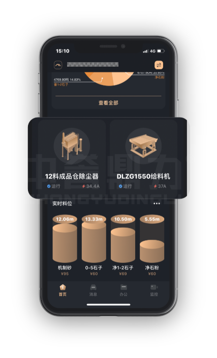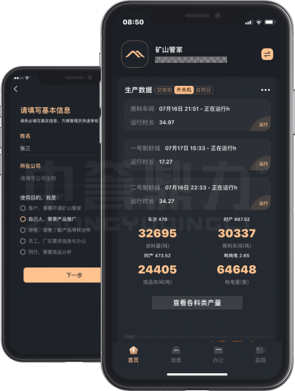 中譽鼎力礦山管家APP是中譽鼎力結(jié)合30余年生產(chǎn)經(jīng)驗,專門為砂石骨料生產(chǎn)線管理者量身定制的生產(chǎn)線手機智能管理平臺,集360度實時監(jiān)控、產(chǎn)線遠程操控、智能進銷管理、倉儲管理、大數(shù)據(jù)統(tǒng)計等功能為一體, 可以為每一位客戶量身定制手機APP,讓您隨地“置身”生產(chǎn)線現(xiàn)場。
