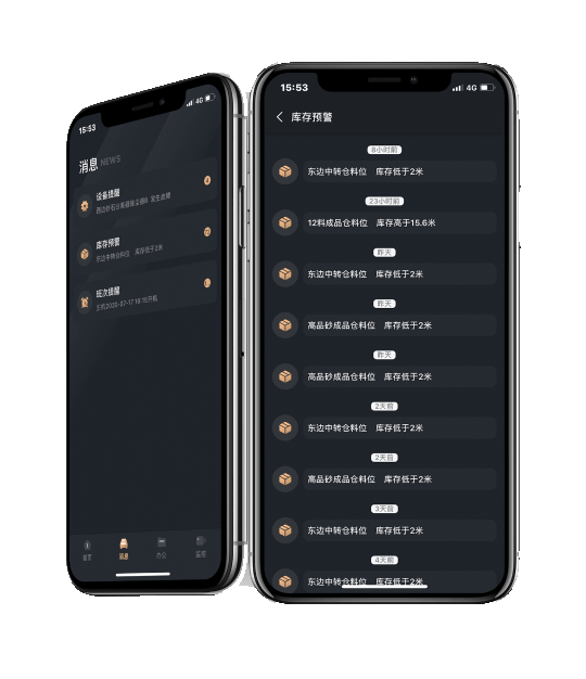 在APP可以實時查看各個料倉的料位器米數(shù)值,當料位出或者低于預(yù)警高度,自動發(fā)送APP提醒通知