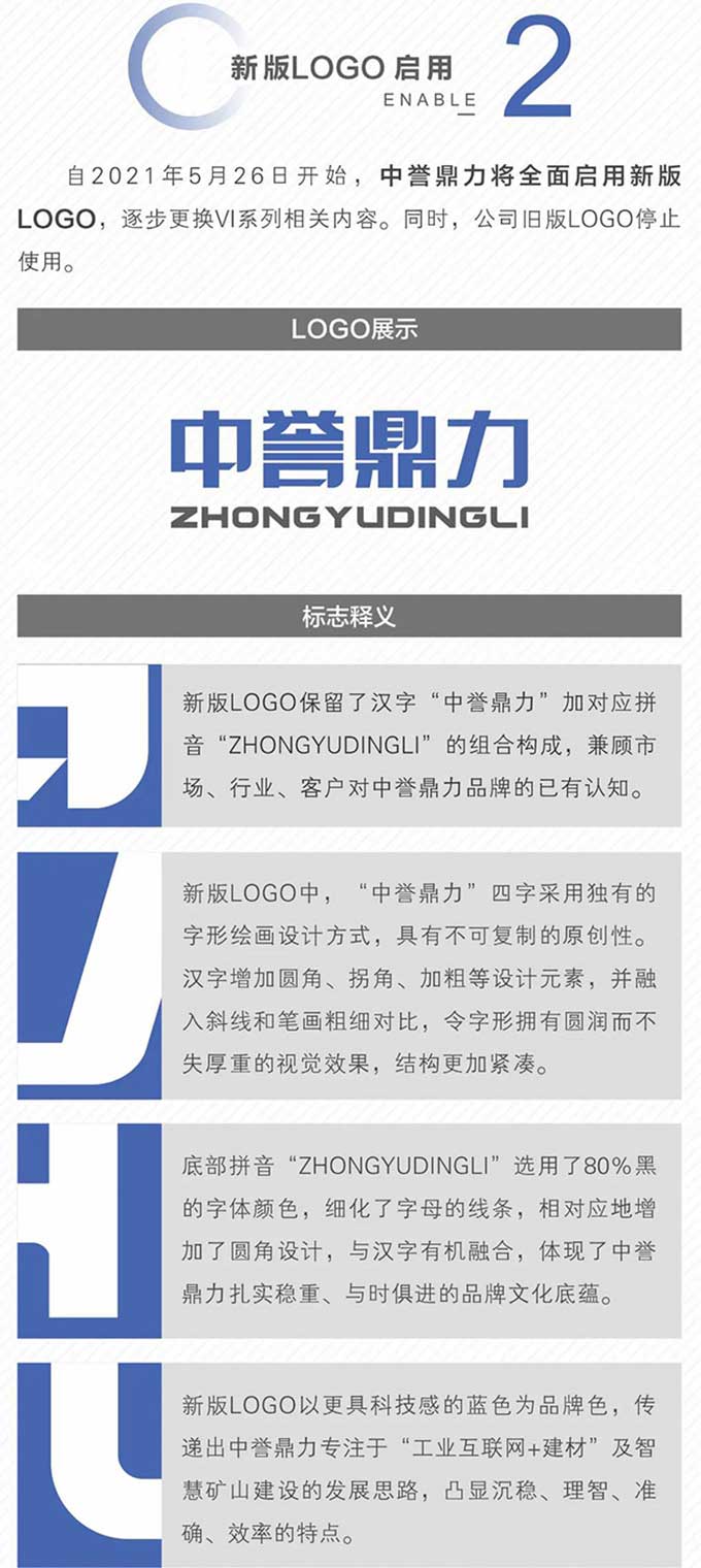 為配合公司整體戰(zhàn)略和發(fā)展規(guī)劃,不管強(qiáng)化公司的形象和影響力,進(jìn)一步增進(jìn)公司LOGO的識(shí)別性和傳播效果,中譽(yù)鼎力形象及LOGO進(jìn)行新升級(jí)調(diào)整。