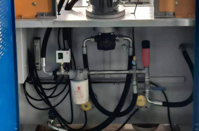 潤(rùn)滑系統(tǒng)配有2*3kw電加熱及2臺(tái)1470風(fēng)冷,油溫低于20度加熱,溫度高于40度時(shí)開啟風(fēng)機(jī)散熱