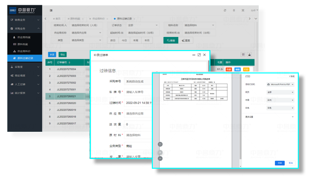 支持材料名稱條件搜索、導出Csv、Excel文件。