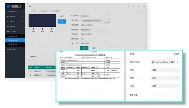砂漿過磅詳細(xì)打印,作廢、列篩選、信息導(dǎo)出等操作。